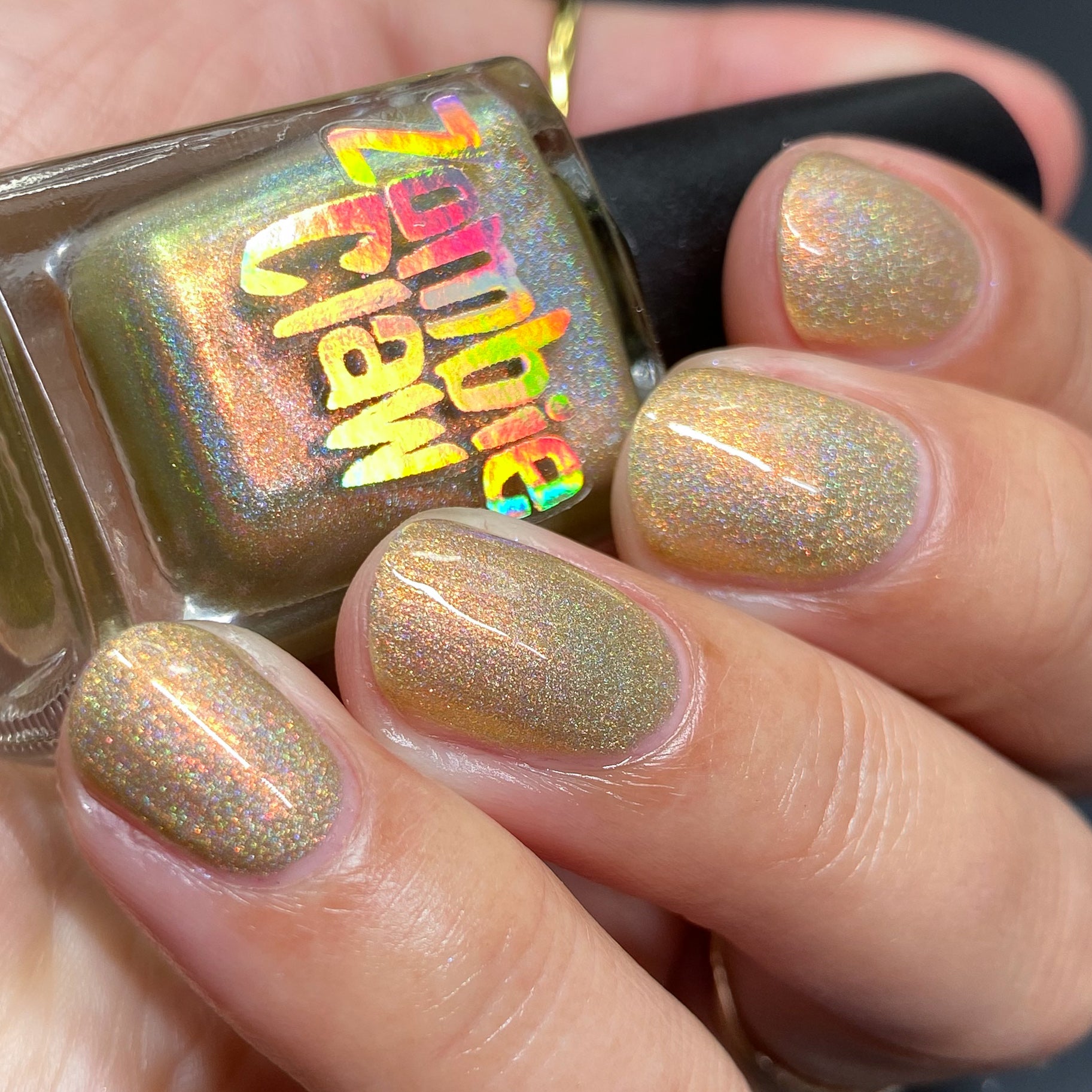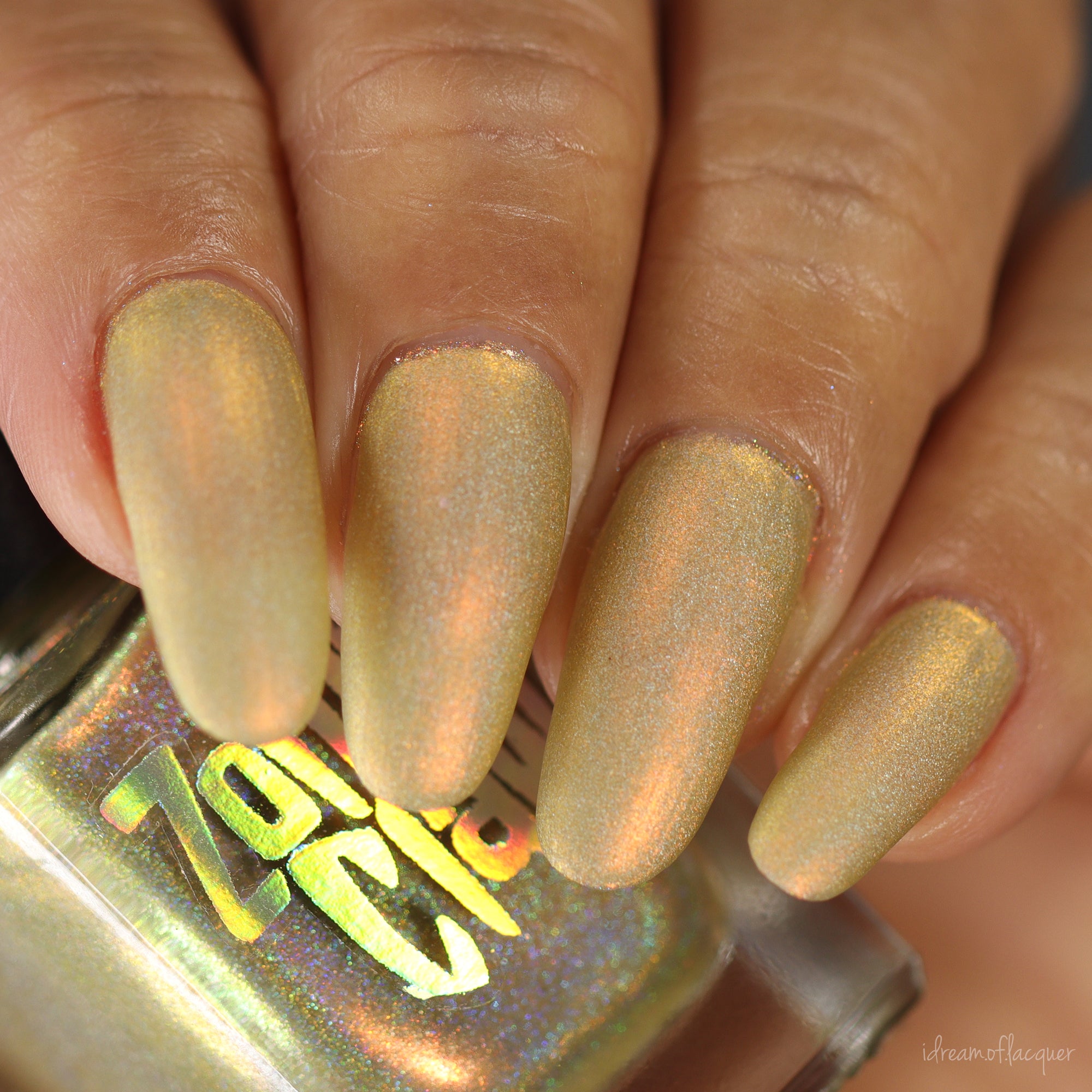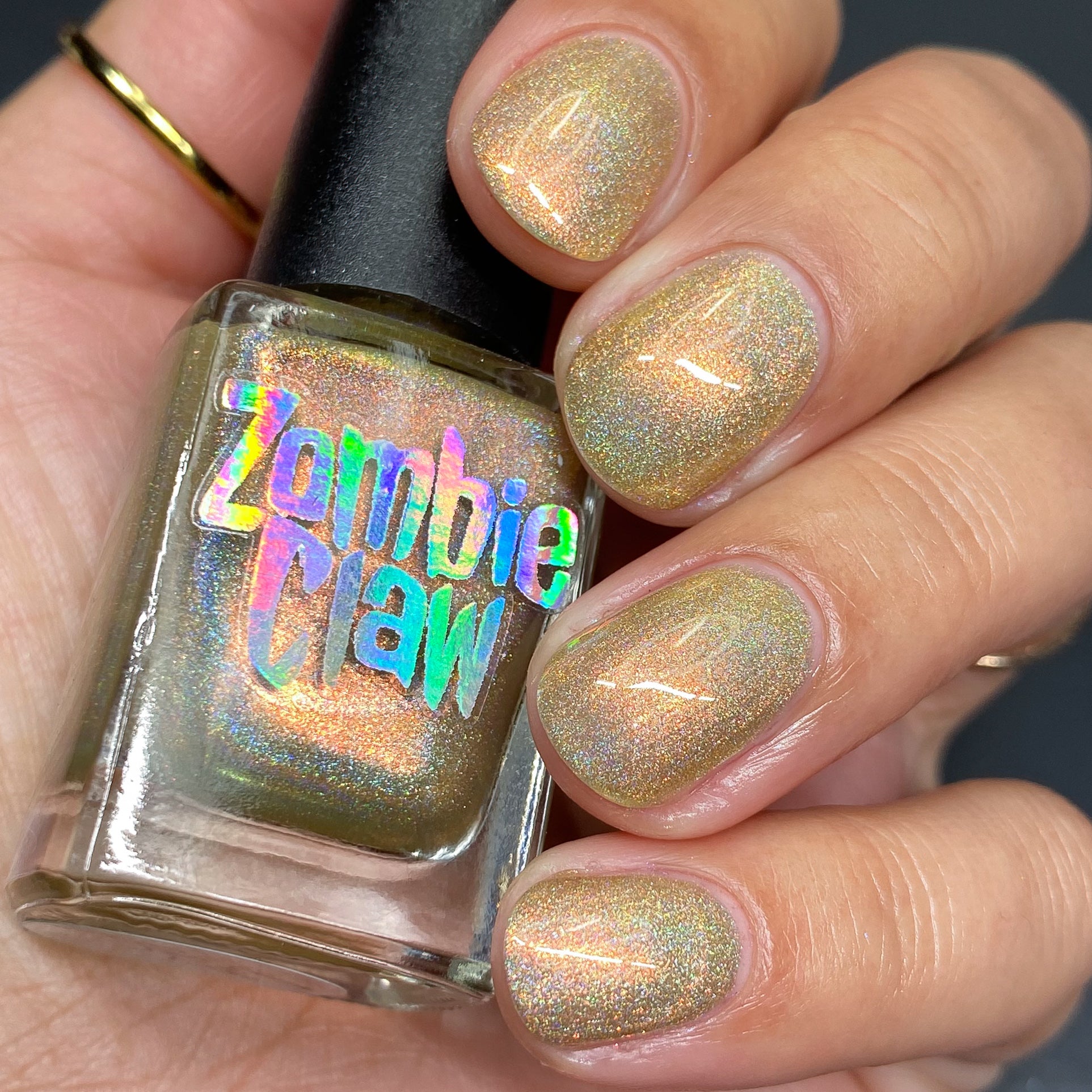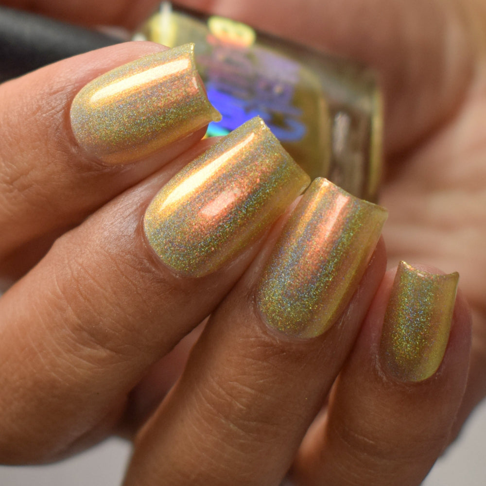A pale orange base with linear holo and red-copper-gold shimmer.